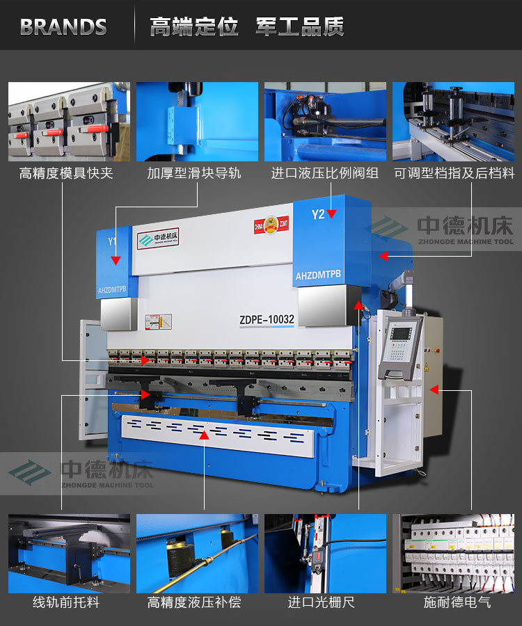 鈑金工業最佳選擇,電液同步數控折彎機是經鈑金行業實際加工經驗驗證的得力折彎彎曲助手。高精度,高效能,抗偏載,自動計算的種種表現最大程度降低了對操作人員的要求,降低企業成本,提高產品品質。本款型號ZDPE-10032,最大承載噸位100噸,最大加工長度3200mm,為企業必備常規型號。推薦入手。國標型號WE67K-100/3200。